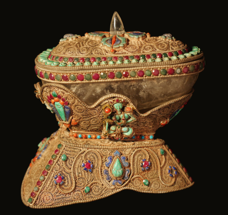 水晶银掐丝手工镶嵌宝石舍利罐和舍利棺