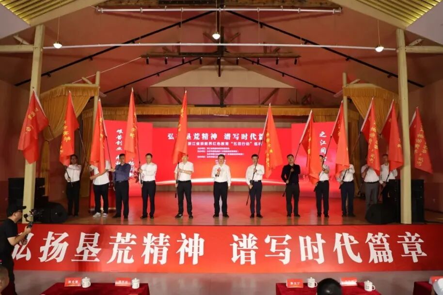 浙江省人大常委会党组成员、副主任暨军民为各地市红色教育“五百行动”授旗,并宣布巡礼启动。